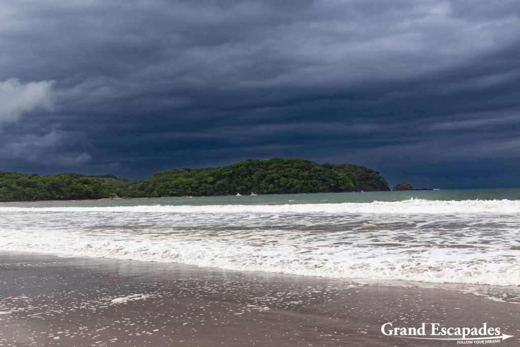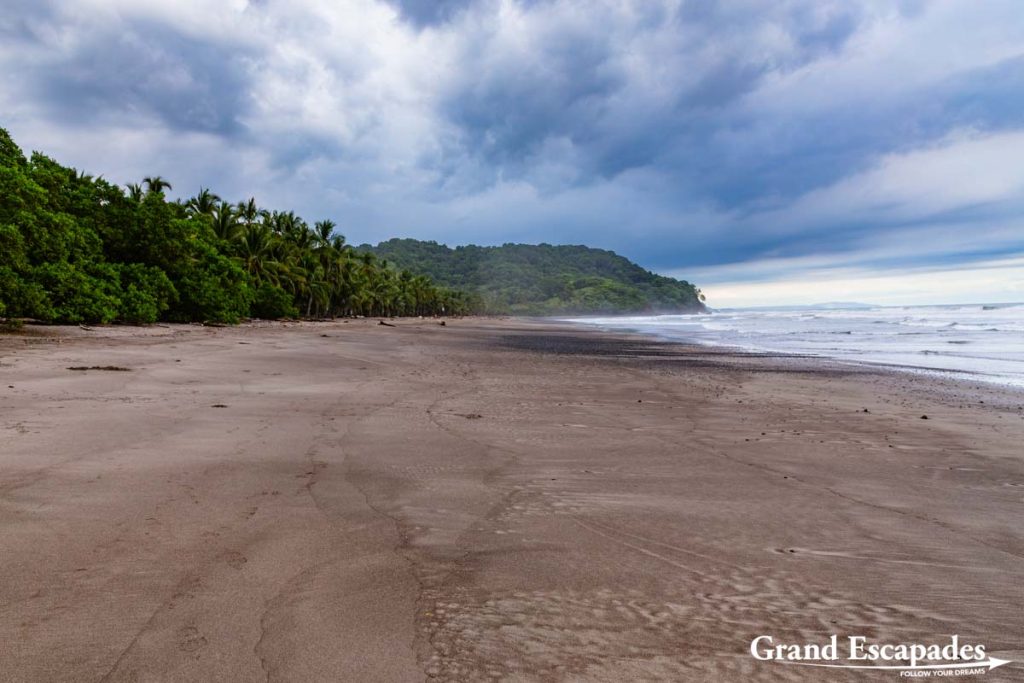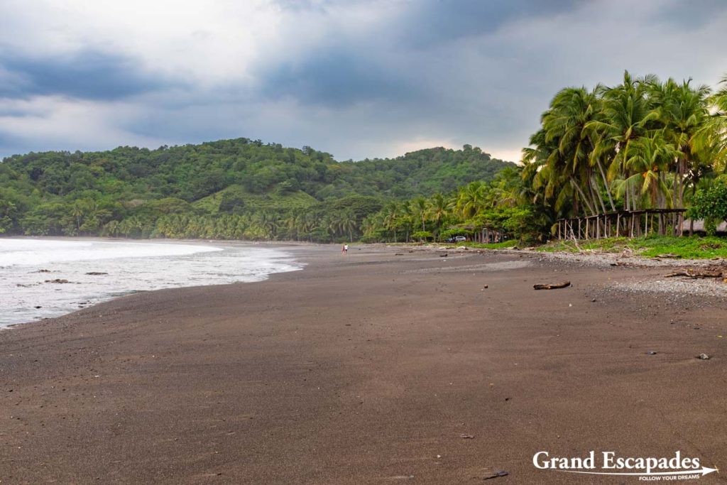 Playa Carrillo – A few kilometers away from Samara, this very long beach featuring dark sand and bordered with palm trees is almost void of people. It seems a great place to be, though there is very little shade on the beach, and close to zero infrastructure (restaurants, bars, markets, …). But we had a very pleasant stroll along the beach with the kids on a cloudy day.